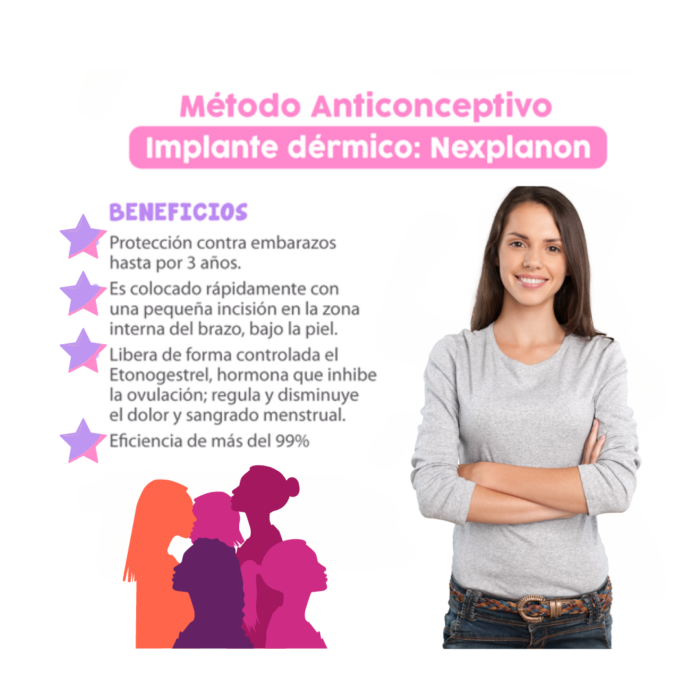 Nexplanon (etonorgestrel 68 mg) es un anticonceptivo hormonal de larga duración. Se inserta un único implante por vía subcutánea (JUSTO BAJO LA PIEL) en la cara interna de la parte superior del brazo no dominante. La presencia del implante debe verificarse inmediatamente tras la inserción por palpación y puede dejarse en el lugar de la inserción durante tres años. Debe informarse a la usuaria que puede solicitar la extracción del implante en cualquier momento. Tras la extracción del implante, la inserción inmediata de un nuevo implante mantendrá una protección anticonceptiva continuada. Si la mujer no desea continuar utilizando Nexplanon 68 mg, pero quiere continuar con la prevención del embarazo, debe recomendársele el uso de otro método anticonceptivo.